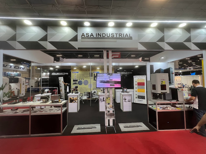Imagens da MERCOPAR 2018 E 2020 realizadas em Caixias do Sul apresentando as linhas de gravadoras a Laser Fibra, PatMark, MarkinBox e EksoVest, e da segunda edição FEIMEC de 2018, onde a Asa Industrial pôde apresentar toda a linha de máquinas para identificação, rastreabilidade e lançamentos como: Exoesqueleto (EksoVest), PatMark e gravadoras Laser Fibra.